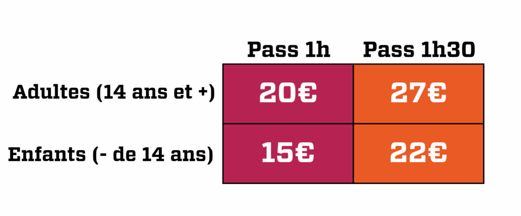 POUR TOUS TYPES D’ÉVÈNEMENTS : anniversaire, séminaire, EVJF, EVG team building… ou pour tout groupe au delà de 20 personnes n’hésitez pas à nous contacter pour plus de détails sur votre venue. (PRIVATISATION POSSIBLE)